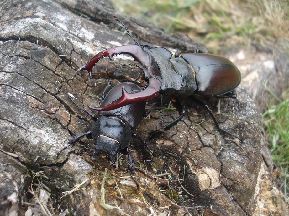 Nach der Paarung sucht sich das Hirschkäfer-Weibchen einen geeigneten Baumstrunk oder abgestorbenen Baum. Dort gräbt es sich in den Boden und legt die Eier nah an die faulenden Wurzeln.