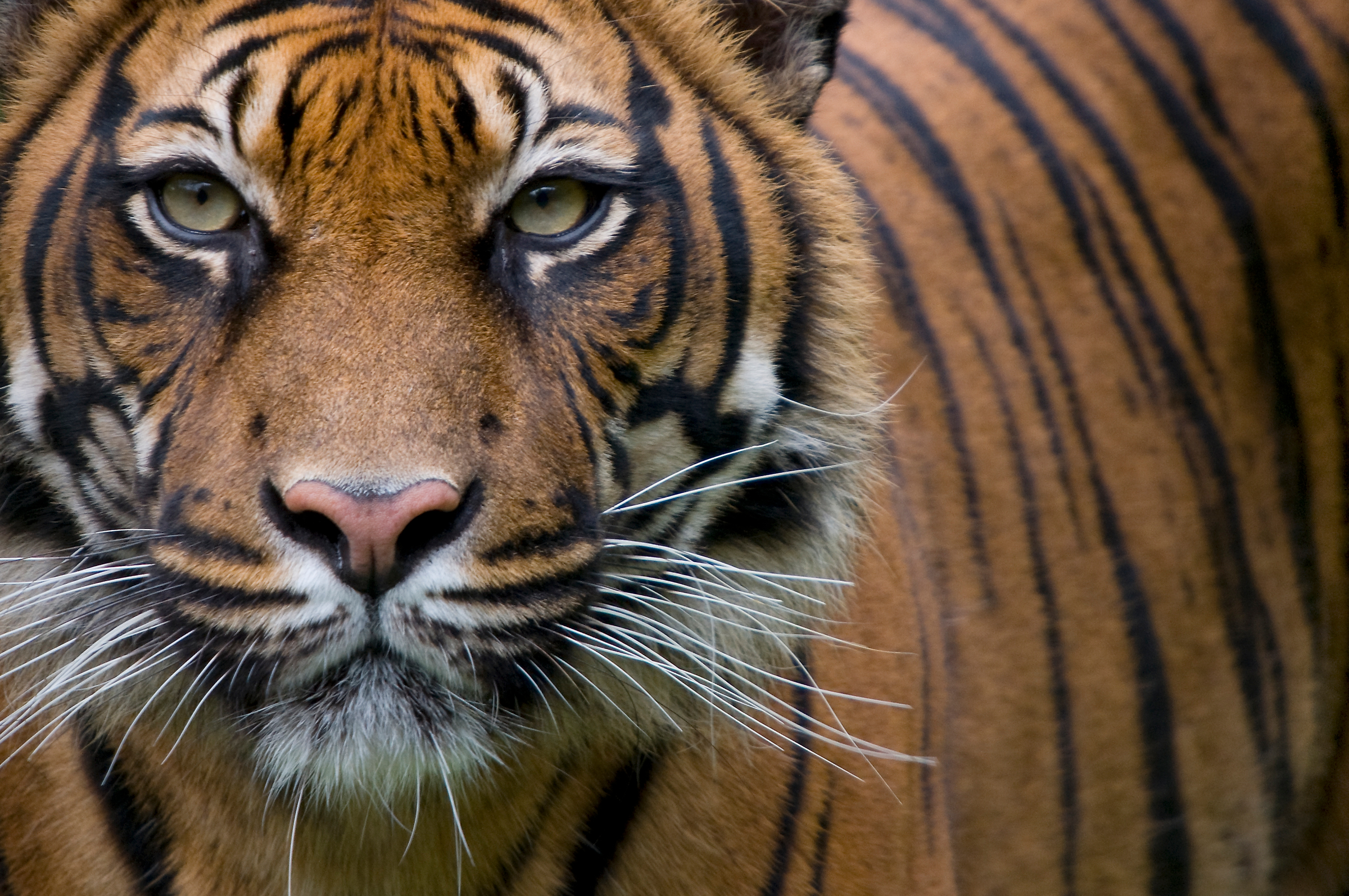 Tiger sind die grössten Raubkatzen der Welt. Das orangefarbene Fell mit den schwarzen Streifen und der weisse Bauch sind typisch für sie. Jedes Tier hat eine andere Fellzeichnung. Dank den Streifen sind Tiger im Wald gut getarnt.